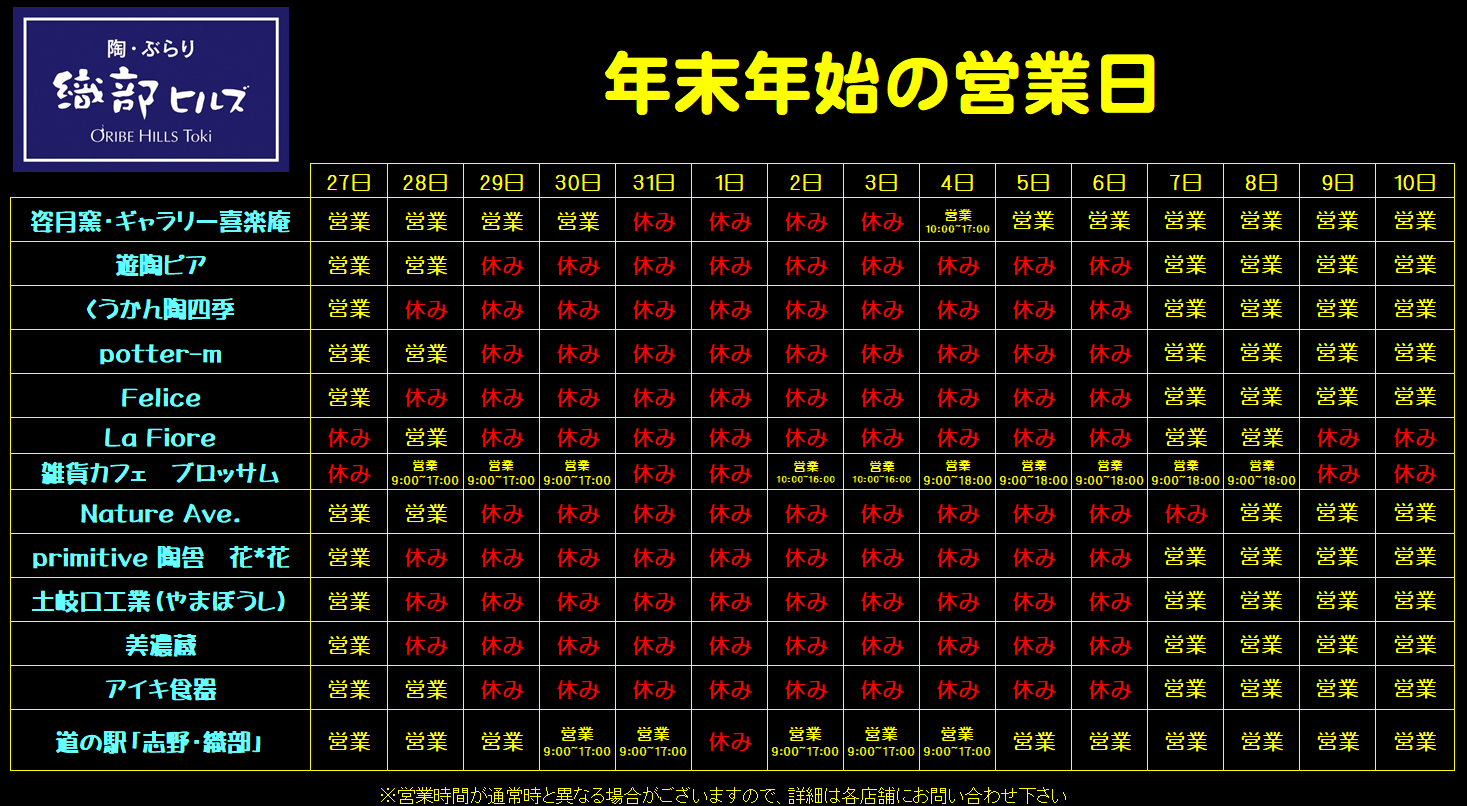 年末年始の営業日