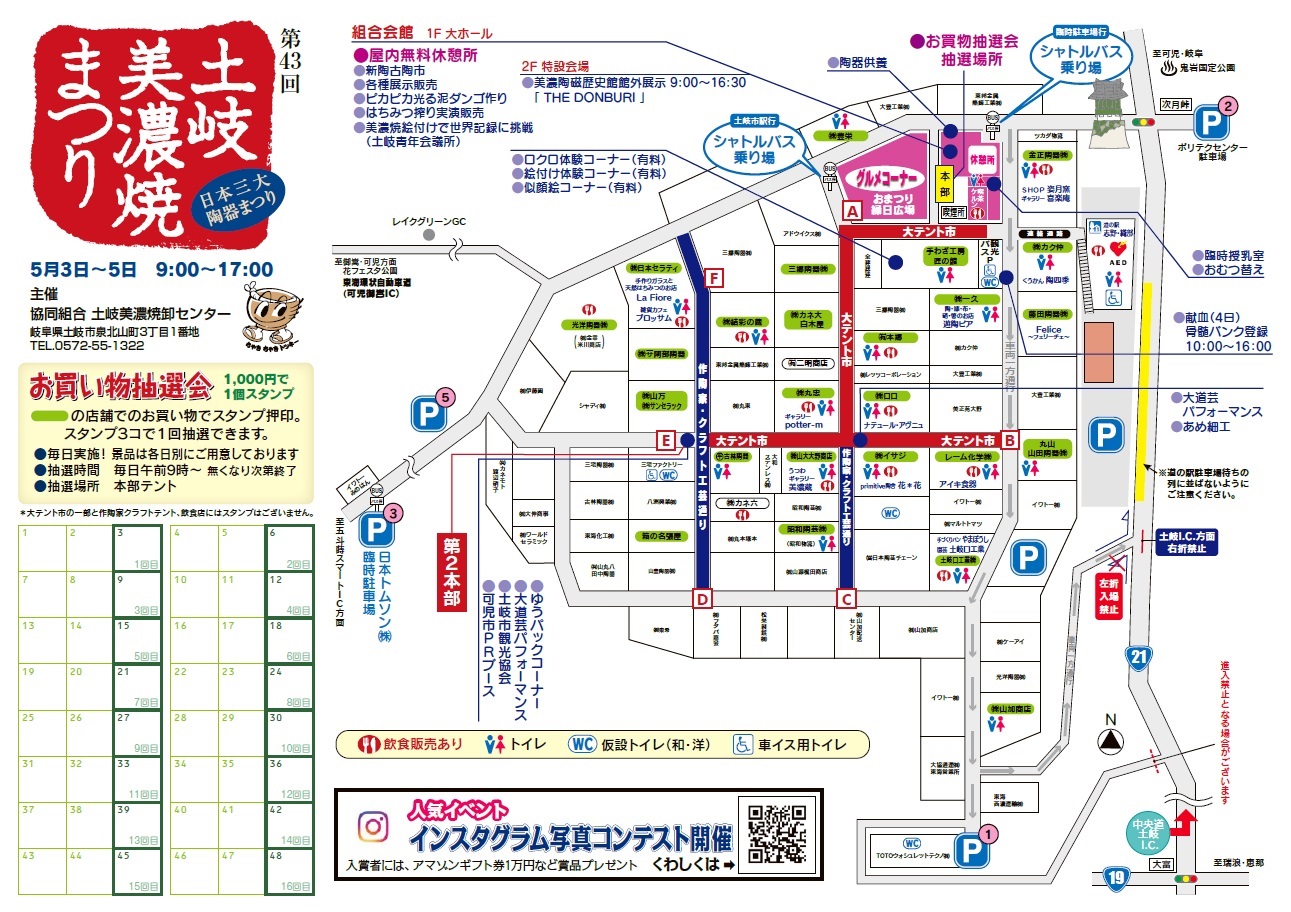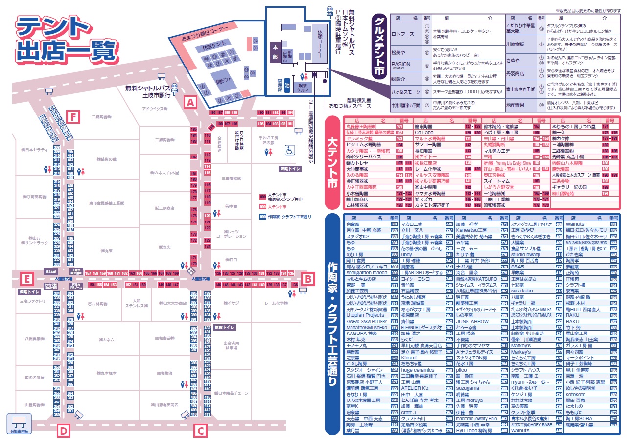 ニュース&イベント 第43回土岐美濃焼まつり会場マップ 2019.04.03|EVENT 会場マップが完成しました。 画像をクリックするとPDF版が開きますので、大きくして見たい場合にご利用下さい。 ◀◀︎ ニュース一覧へ